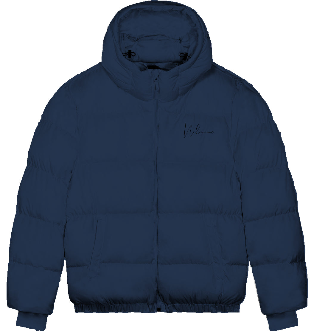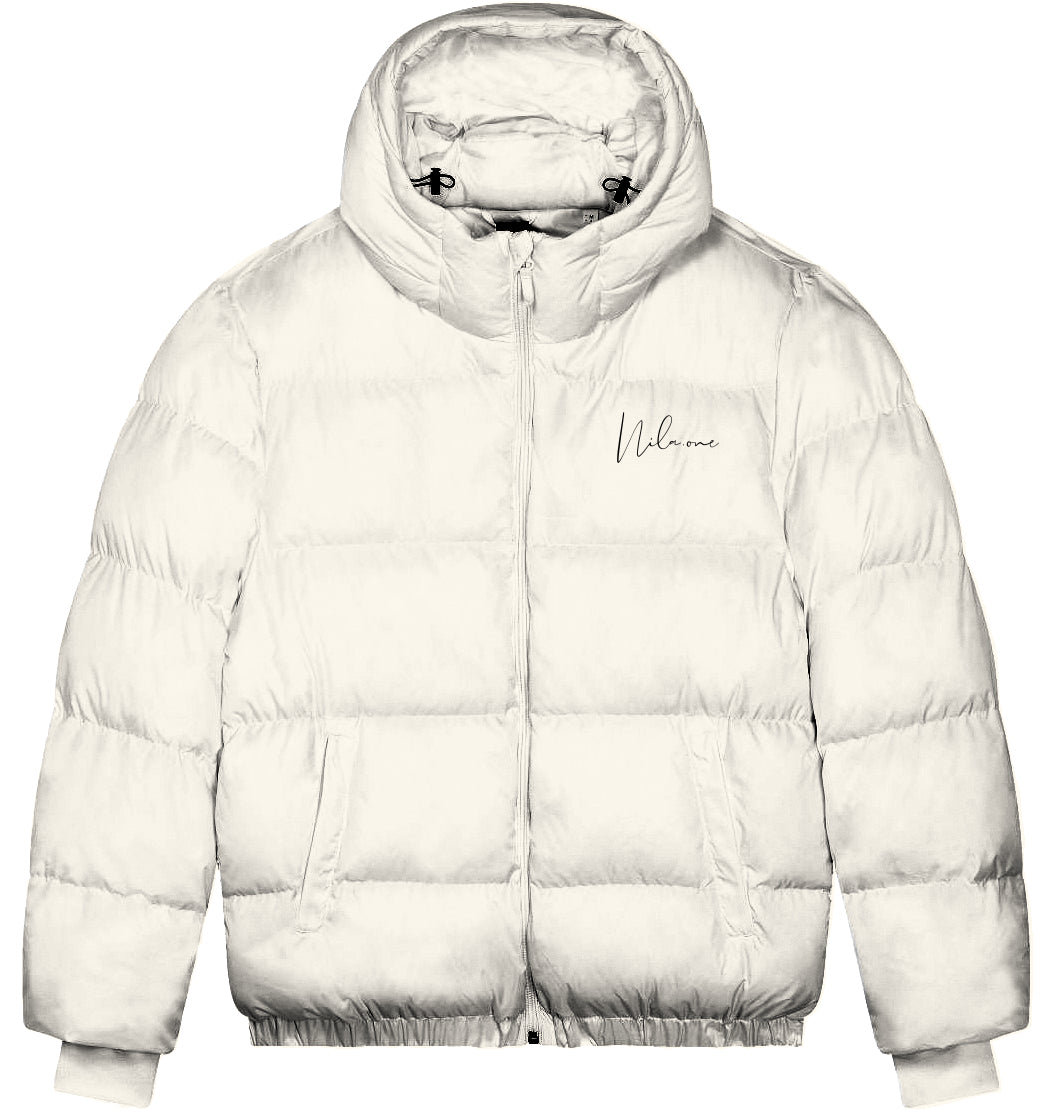 Oversized Steppjacke | Eingesetzte Ärmel | 1x1-Rippstrick an Ärmelbündchen | Elastischer Saum | Gefütterte Kapuze mit verstellbaren Kordelstoppern aus Polyester und elastischen Kordeln auf der Innenseite | Nylonreißverschluss mittig vorn mit Kinnschutz | aspeltaschen mit Reißverschluss mit extra Ripsband | Halbmond aus Oberstoff im Nacken mit Aufhängeschlaufe aus Oberstoff | Brusttasche mit Reißverschluss innen | Innenliegende Ripsband-Riemen für verschiedene Tragemöglichkeiten | Reißverschlussöffnung innen am Saum und an der linken Brust zur einfachen Veredelung